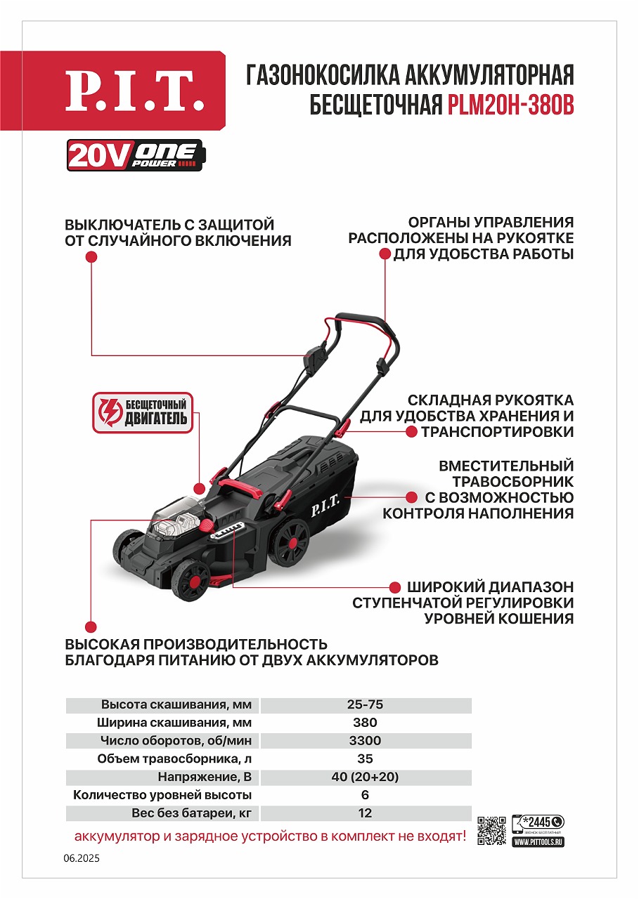 Следующий товар в категории: Газонокосилка аккумуляторная (бесщеточная) PLM20H-330B/1 PIT
